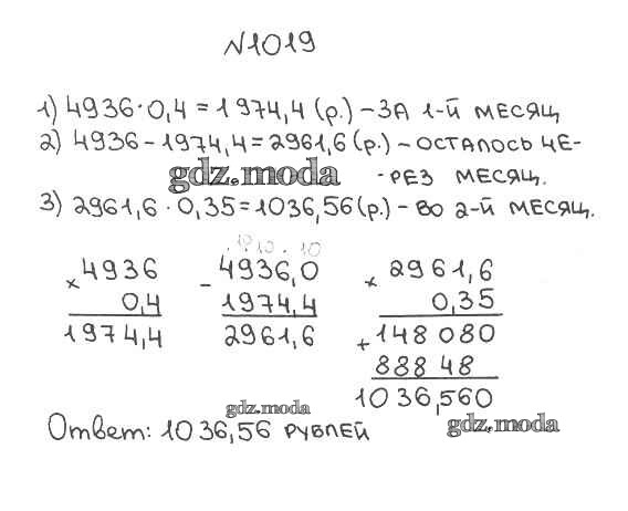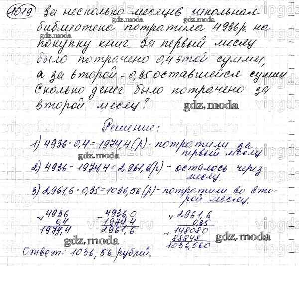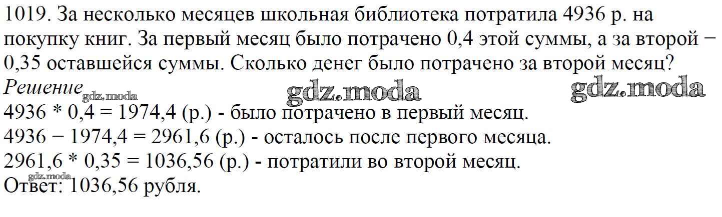ОТВЕТ на задание № 1019 Учебник по Математике 5 класс Мерзляк Алгоритм успеха
