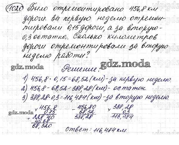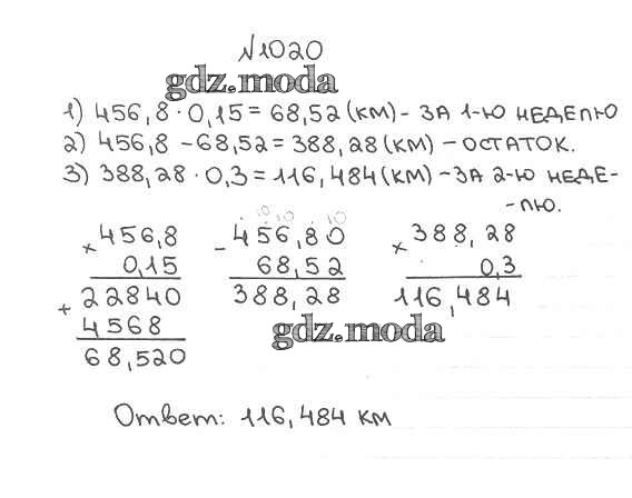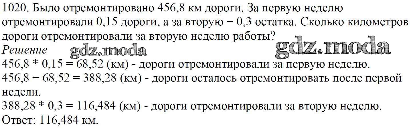 ОТВЕТ на задание № 1020 Учебник по Математике 5 класс Мерзляк Алгоритм успеха