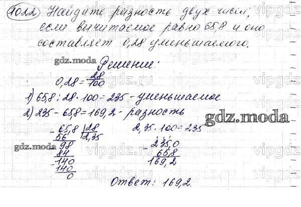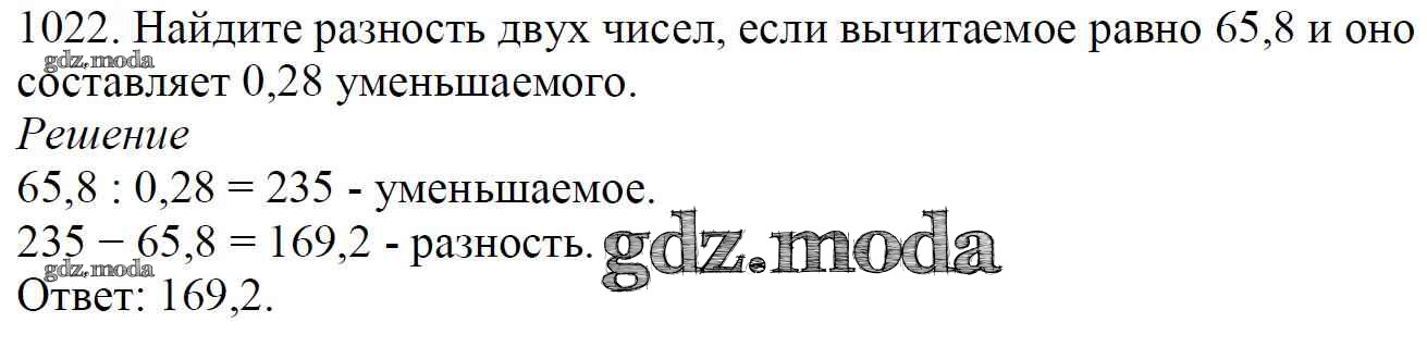 ОТВЕТ на задание № 1022 Учебник по Математике 5 класс Мерзляк Алгоритм успеха