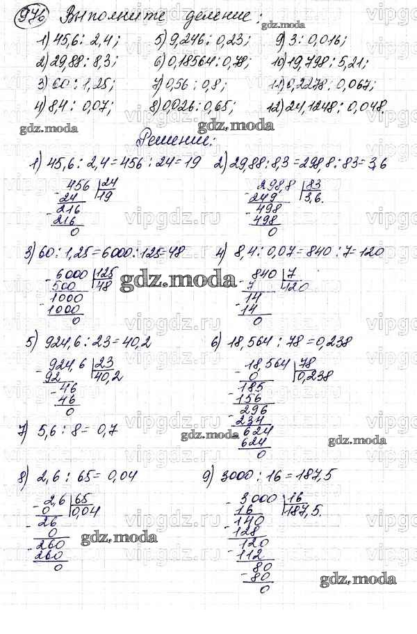 ОТВЕТ на задание № 976 Учебник по Математике 5 класс Мерзляк Алгоритм успеха