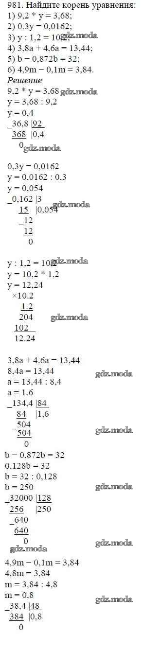 ОТВЕТ на задание № 981 Учебник по Математике 5 класс Мерзляк Алгоритм успеха