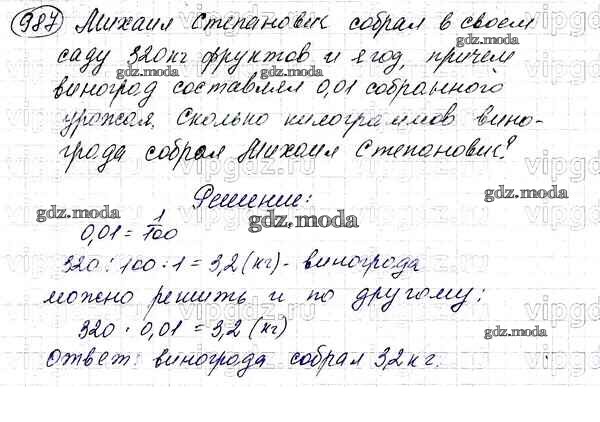 ОТВЕТ на задание № 987 Учебник по Математике 5 класс Мерзляк Алгоритм успеха
