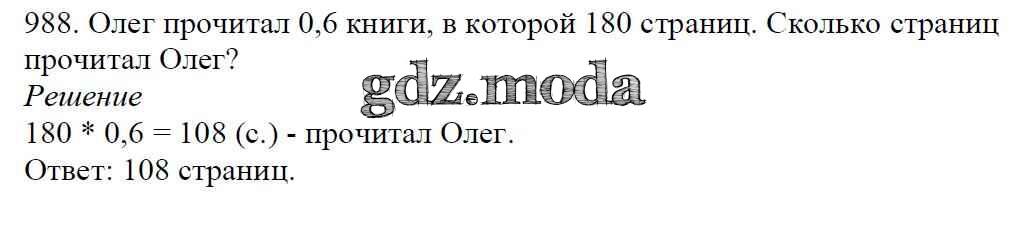 ОТВЕТ на задание № 988 Учебник по Математике 5 класс Мерзляк Алгоритм успеха