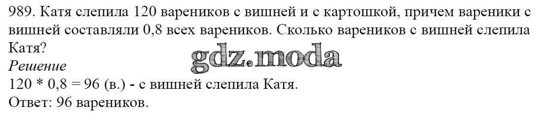 ОТВЕТ на задание № 989 Учебник по Математике 5 класс Мерзляк Алгоритм успеха