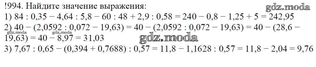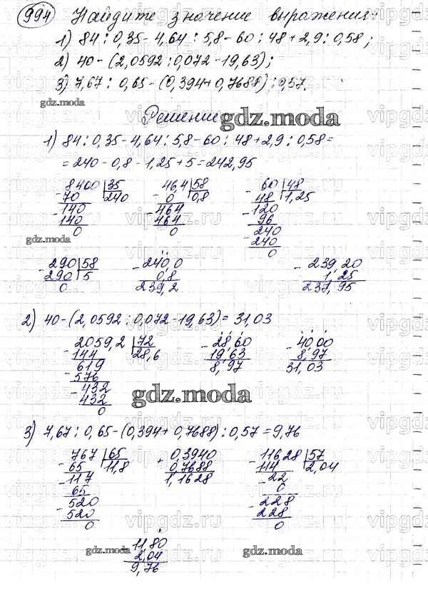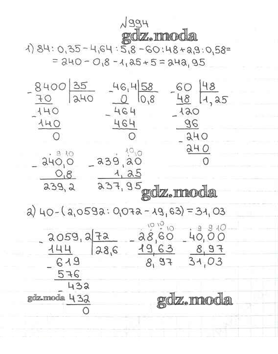 ОТВЕТ на задание № 994 Учебник по Математике 5 класс Мерзляк Алгоритм успеха