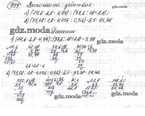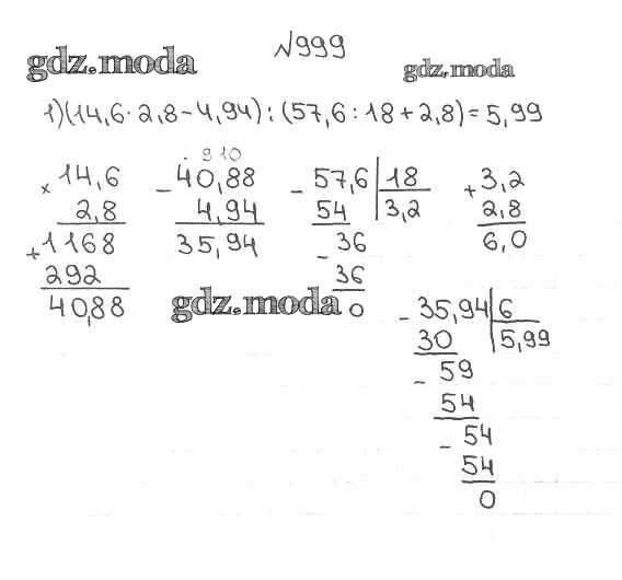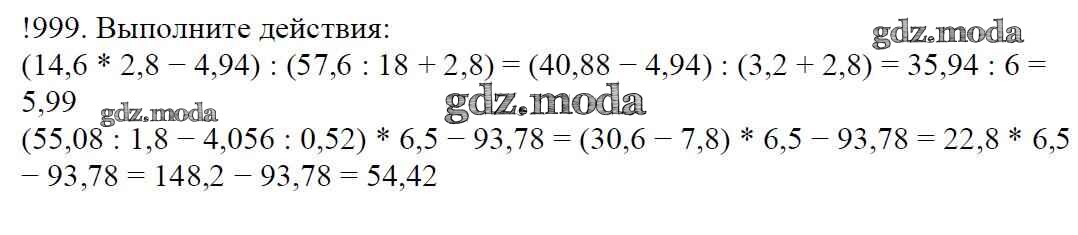 ОТВЕТ на задание № 999 Учебник по Математике 5 класс Мерзляк Алгоритм успеха