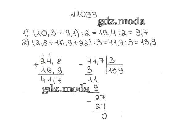 ОТВЕТ на задание № 1033 Учебник по Математике 5 класс Мерзляк Алгоритм успеха