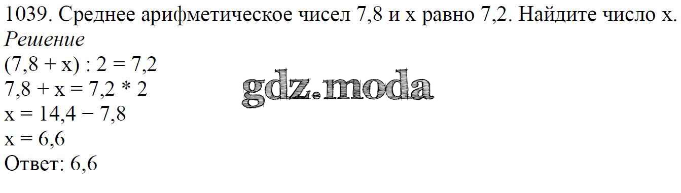 ОТВЕТ на задание № 1039 Учебник по Математике 5 класс Мерзляк Алгоритм успеха