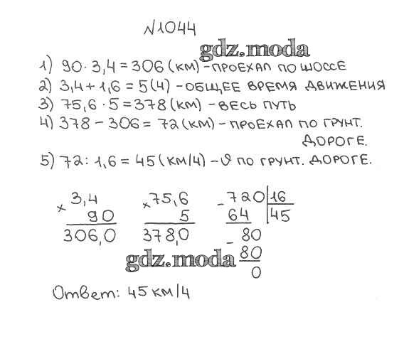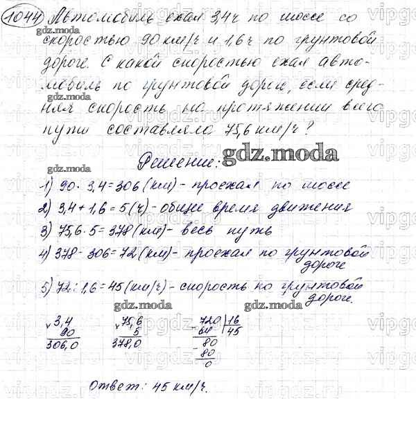 ОТВЕТ на задание № 1044 Учебник по Математике 5 класс Мерзляк Алгоритм успеха