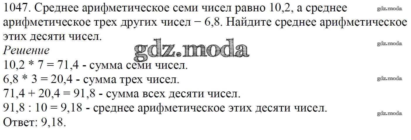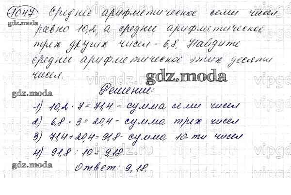ОТВЕТ на задание № 1047 Учебник по Математике 5 класс Мерзляк Алгоритм успеха