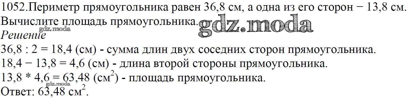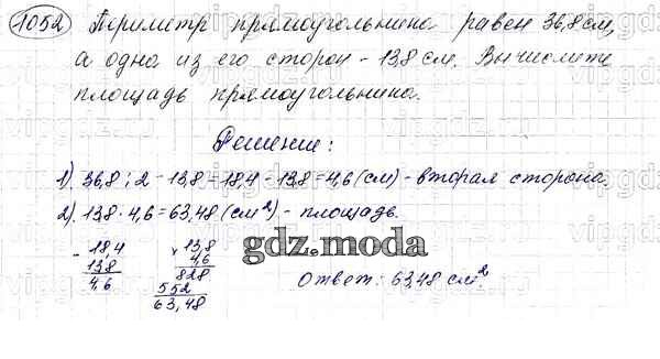 ОТВЕТ на задание № 1052 Учебник по Математике 5 класс Мерзляк Алгоритм успеха