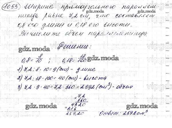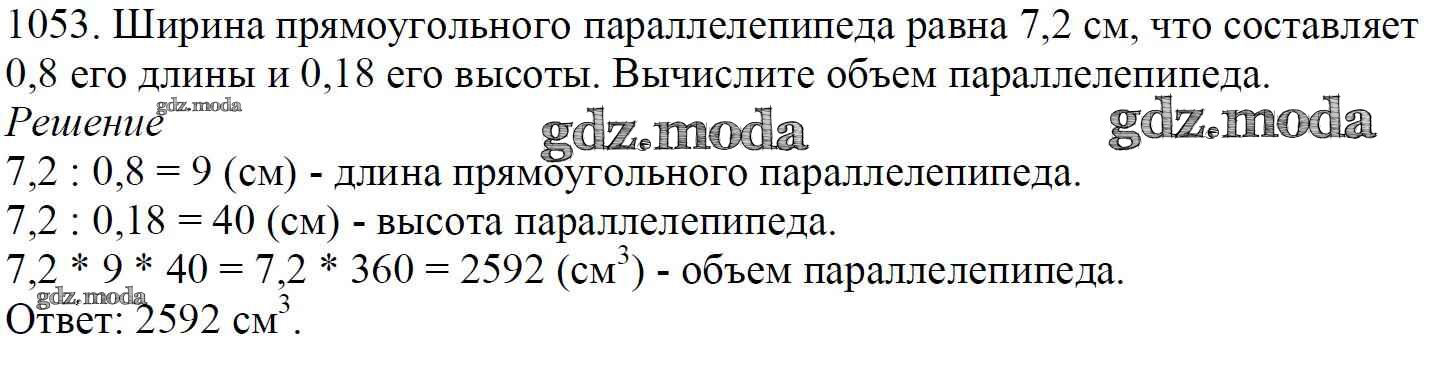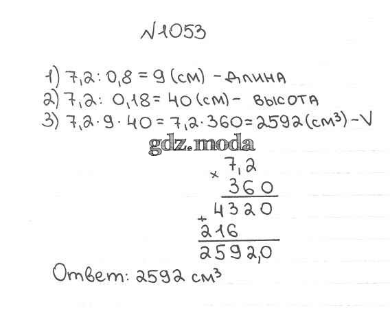ОТВЕТ на задание № 1053 Учебник по Математике 5 класс Мерзляк Алгоритм успеха