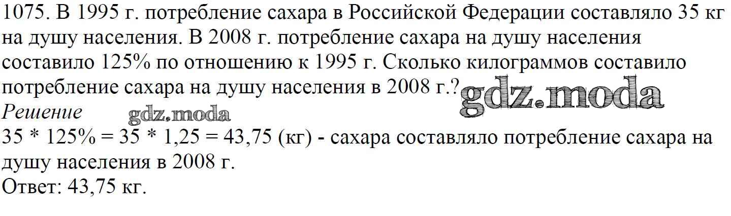 ОТВЕТ на задание № 1075 Учебник по Математике 5 класс Мерзляк Алгоритм успеха