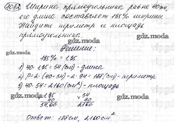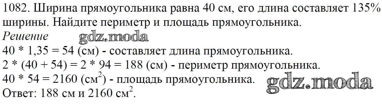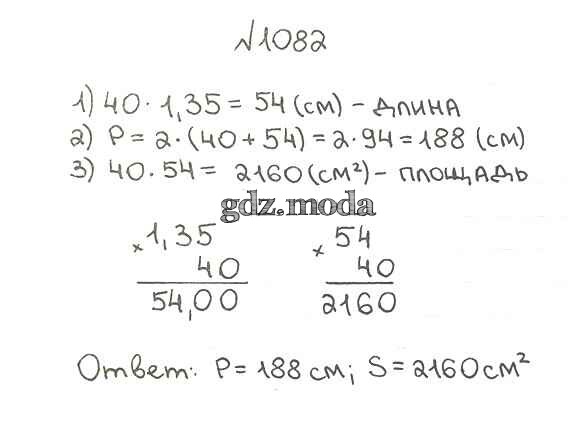 ОТВЕТ на задание № 1082 Учебник по Математике 5 класс Мерзляк Алгоритм успеха