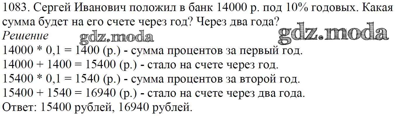 ОТВЕТ на задание № 1083 Учебник по Математике 5 класс Мерзляк Алгоритм успеха