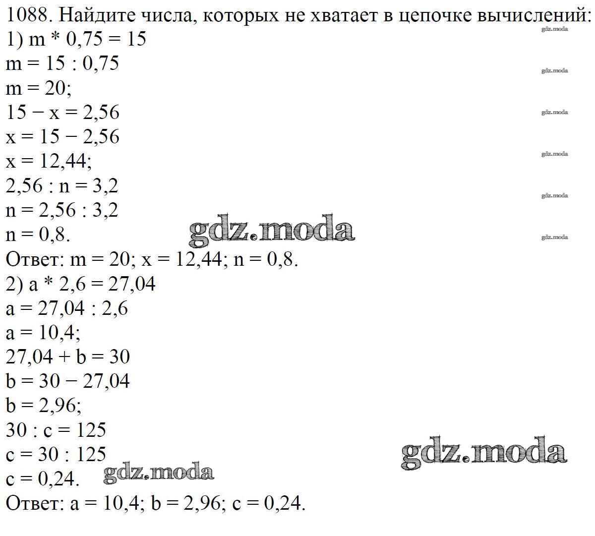 ОТВЕТ на задание № 1088 Учебник по Математике 5 класс Мерзляк Алгоритм успеха