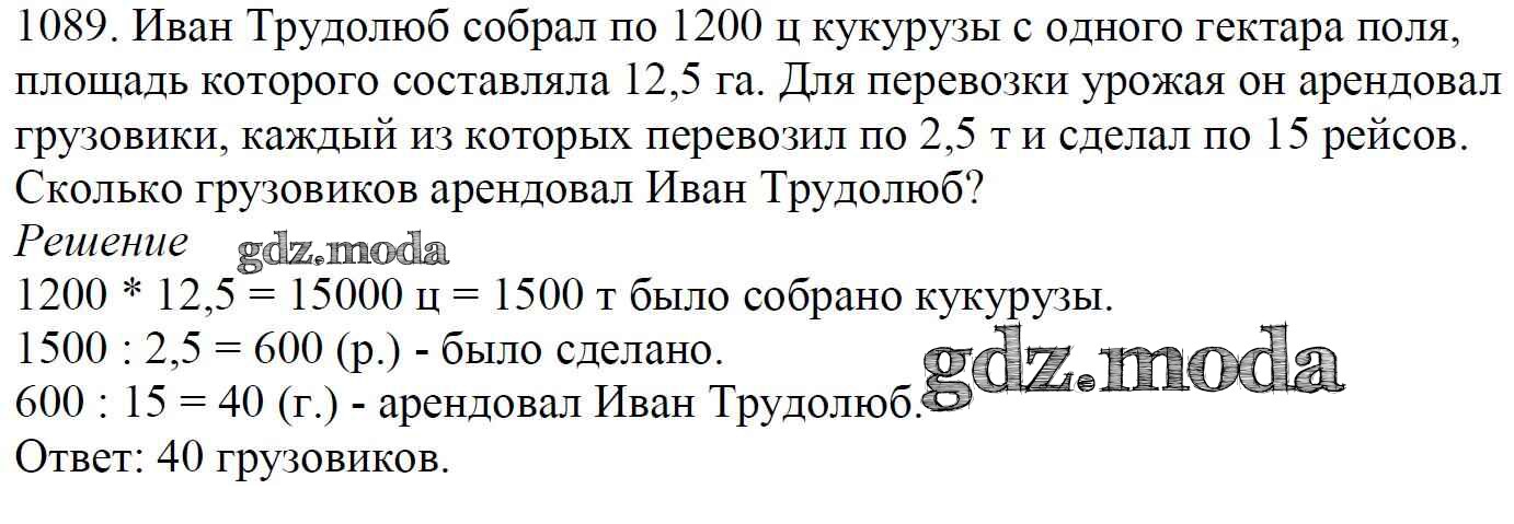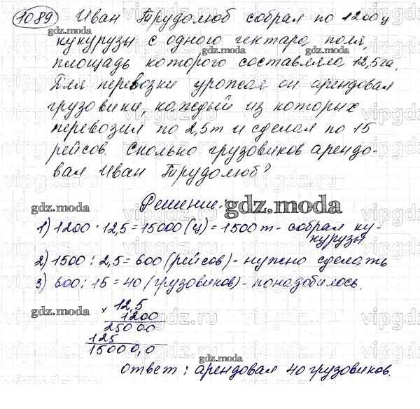 ОТВЕТ на задание № 1089 Учебник по Математике 5 класс Мерзляк Алгоритм успеха