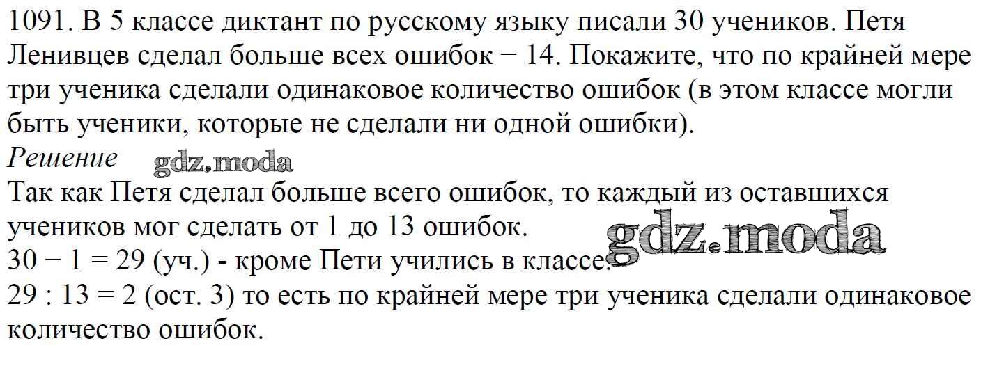 ОТВЕТ на задание № 1091 Учебник по Математике 5 класс Мерзляк Алгоритм успеха