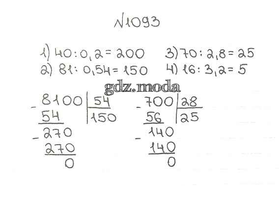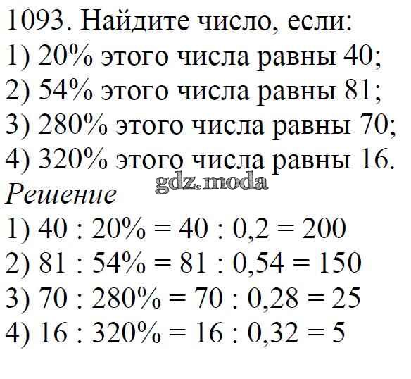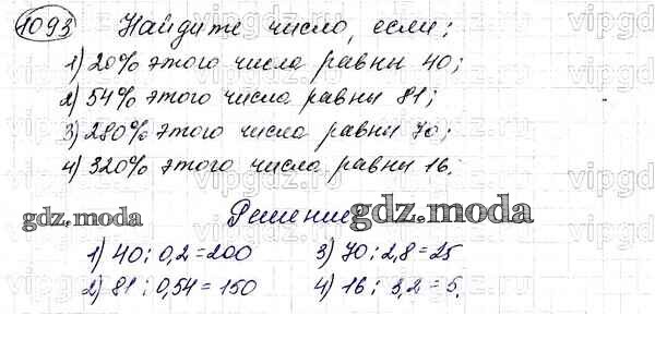 ОТВЕТ на задание № 1093 Учебник по Математике 5 класс Мерзляк Алгоритм успеха