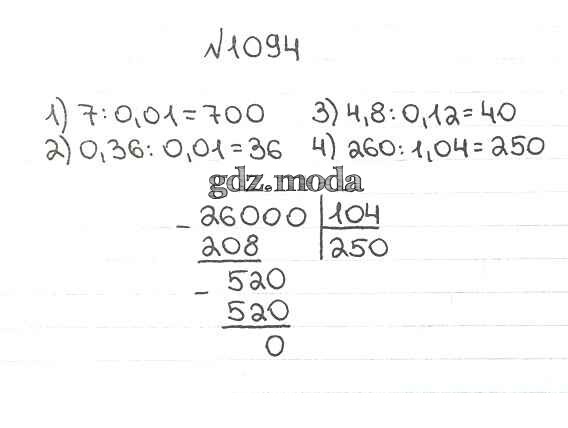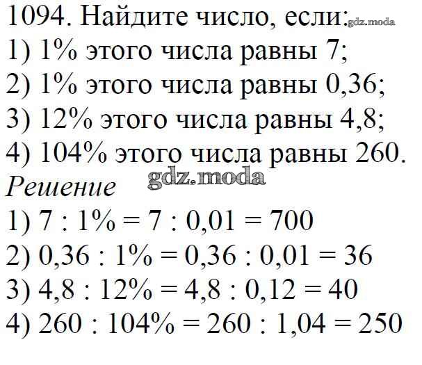 ОТВЕТ на задание № 1094 Учебник по Математике 5 класс Мерзляк Алгоритм успеха