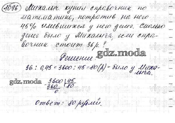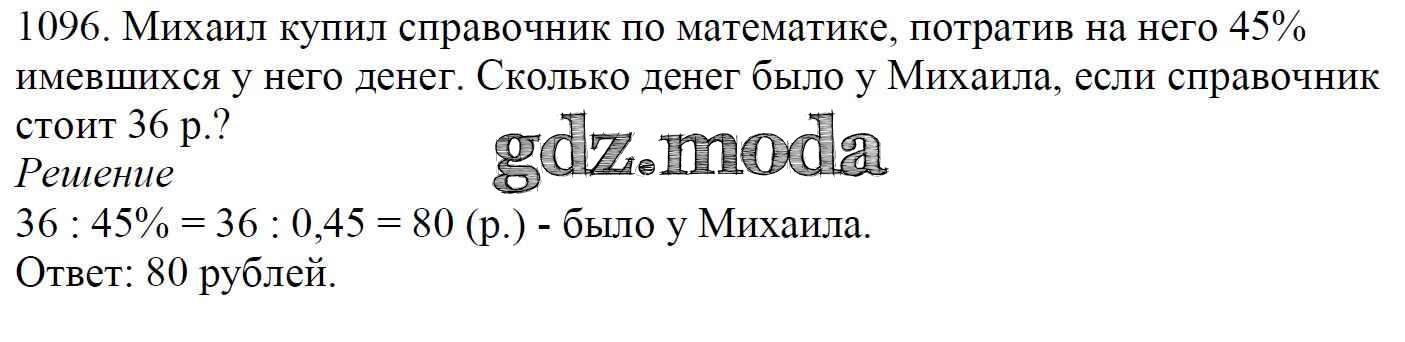 ОТВЕТ на задание № 1096 Учебник по Математике 5 класс Мерзляк Алгоритм успеха