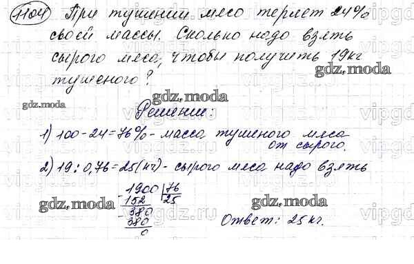 ОТВЕТ на задание № 1104 Учебник по Математике 5 класс Мерзляк Алгоритм успеха