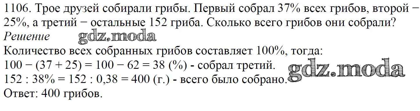 ОТВЕТ на задание № 1106 Учебник по Математике 5 класс Мерзляк Алгоритм успеха