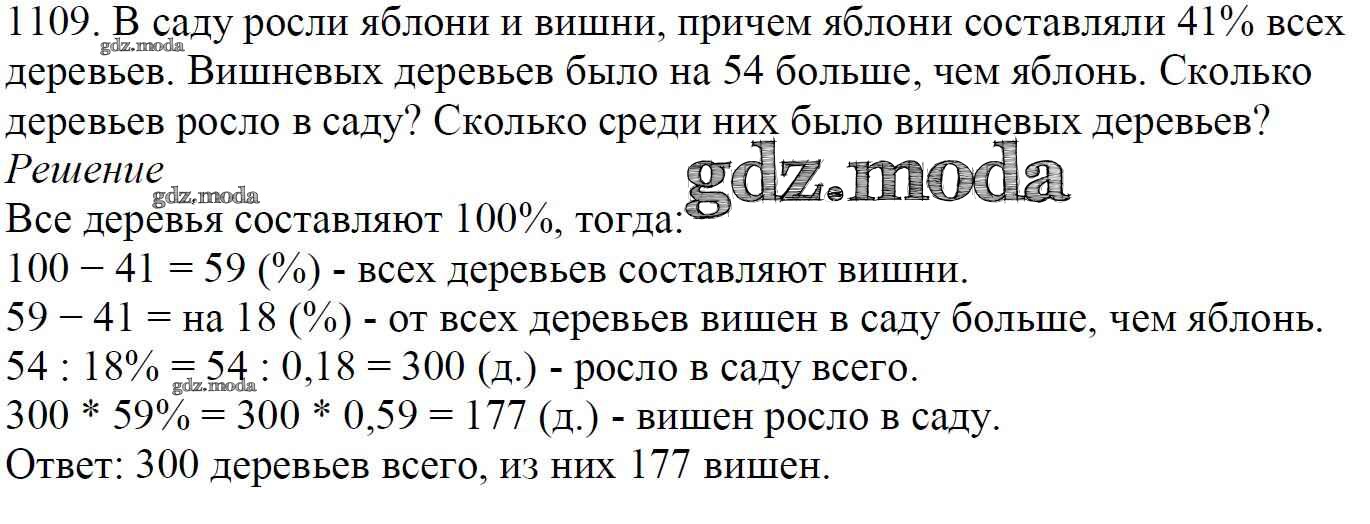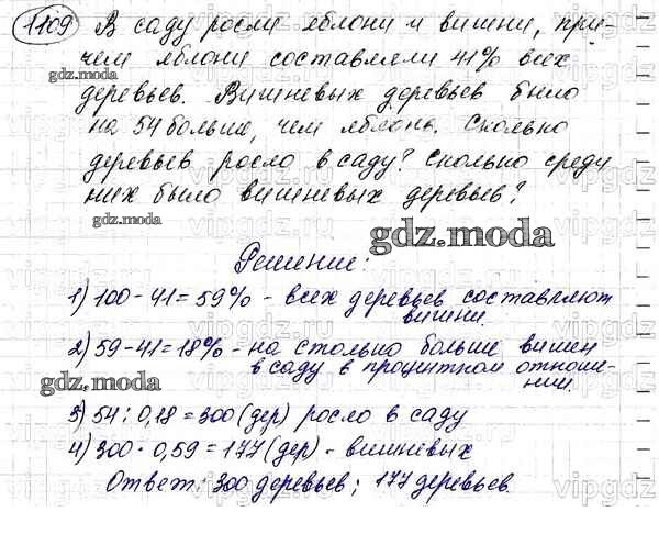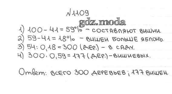 ОТВЕТ на задание № 1109 Учебник по Математике 5 класс Мерзляк Алгоритм успеха
