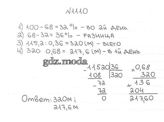 ОТВЕТ на задание № 1110 Учебник по Математике 5 класс Мерзляк Алгоритм успеха
