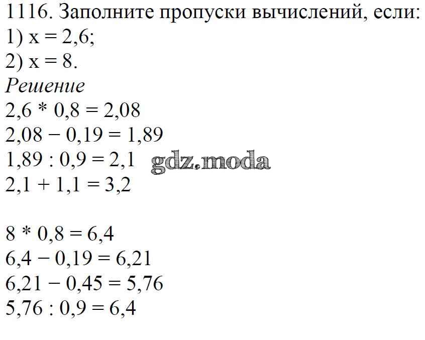 ОТВЕТ на задание № 1116 Учебник по Математике 5 класс Мерзляк Алгоритм успеха