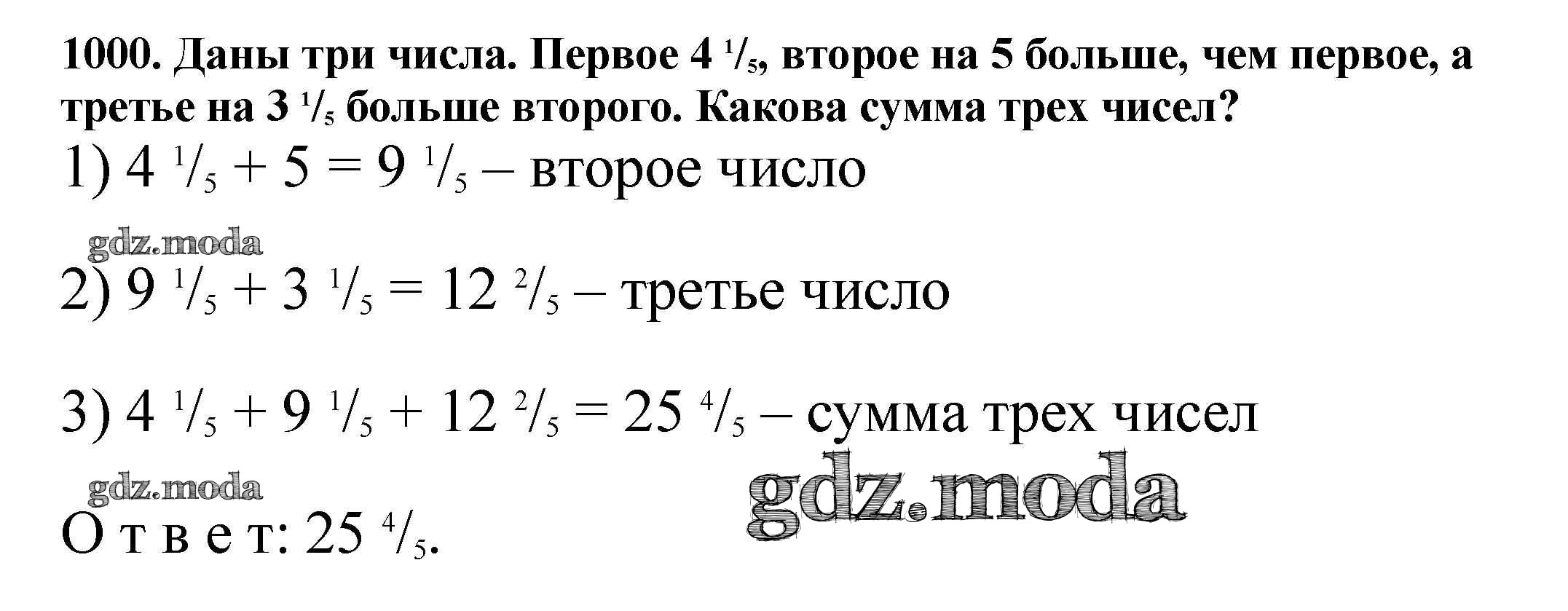 ОТВЕТ на задание № 1000 Учебник по Математике 5 класс Никольский МГУ - школе
