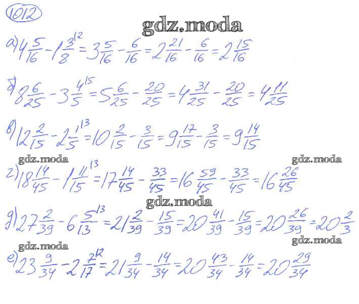 ОТВЕТ на задание № 1012 Учебник по Математике 5 класс Никольский МГУ - школе