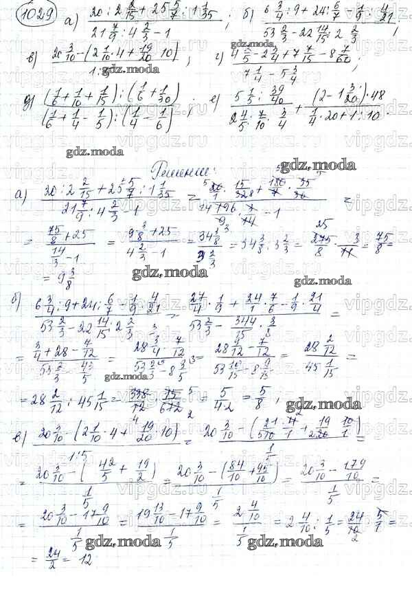 ГДЗ решение к заданию № 1029 Математика 5 класс Никольский С.М. Просвещение, Просвещение 2016, 2012 ФГОС бесплатно на гдз.мода!