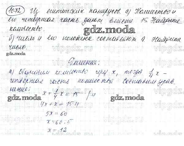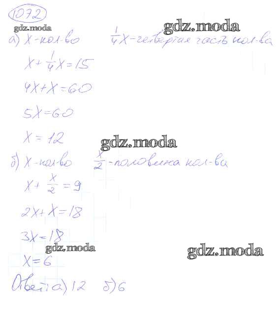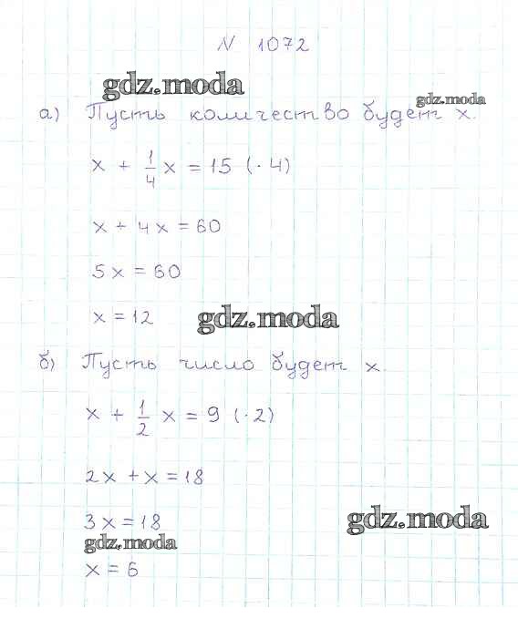 ОТВЕТ на задание № 1072 Учебник по Математике 5 класс Никольский МГУ - школе