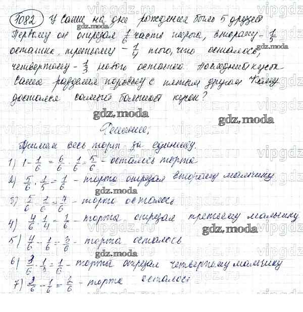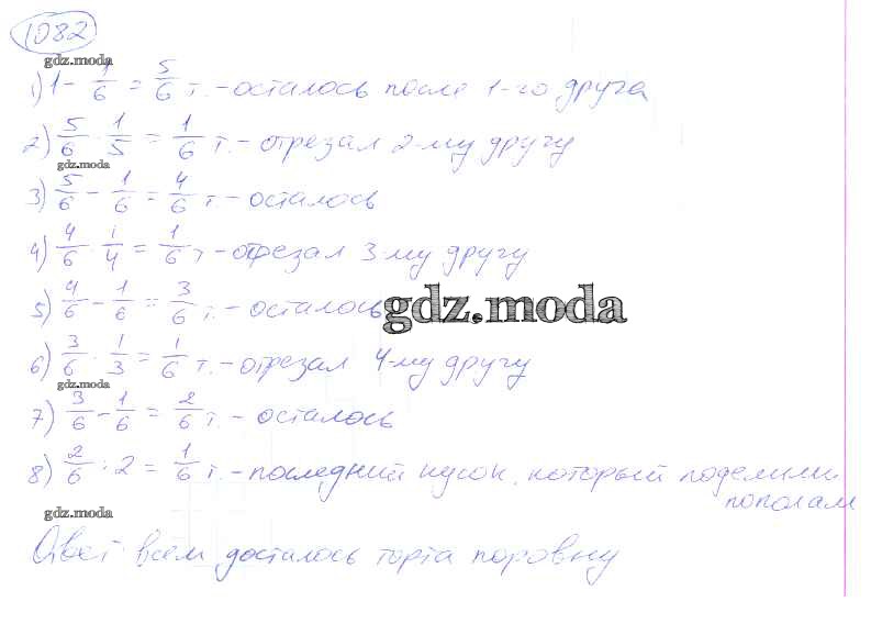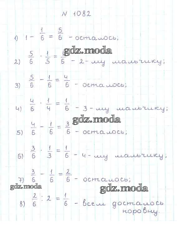 ОТВЕТ на задание № 1082 Учебник по Математике 5 класс Никольский МГУ - школе