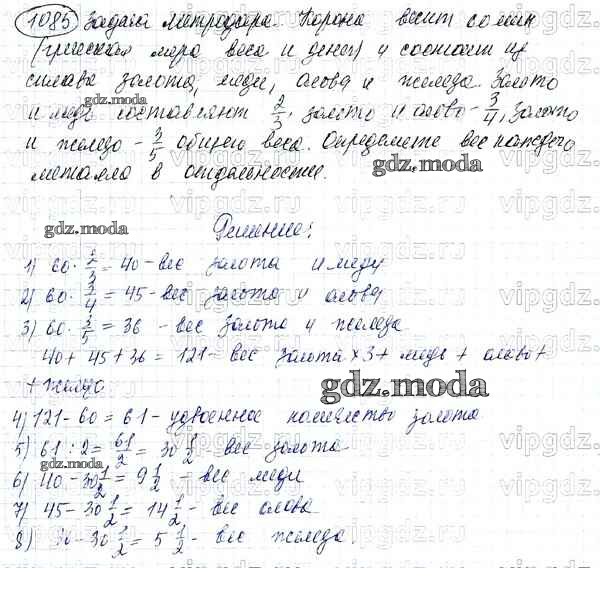 ОТВЕТ на задание № 1085 Учебник по Математике 5 класс Никольский МГУ - школе