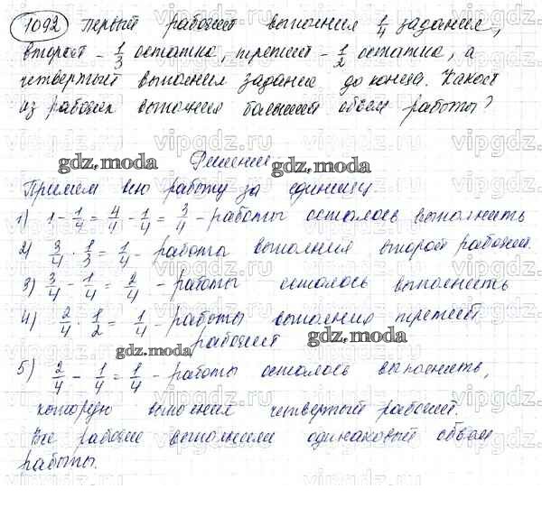 ОТВЕТ на задание № 1092 Учебник по Математике 5 класс Никольский МГУ - школе