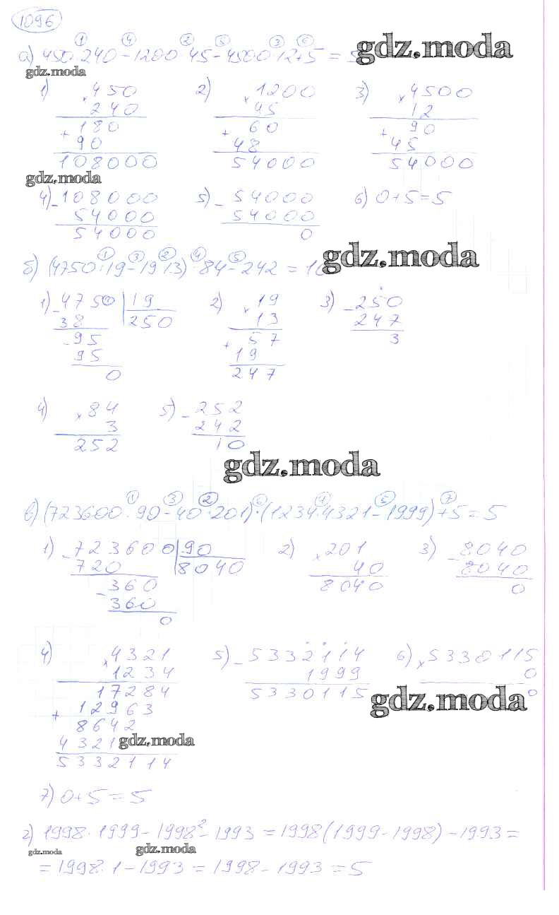 ОТВЕТ на задание № 1096 Учебник по Математике 5 класс Никольский МГУ - школе