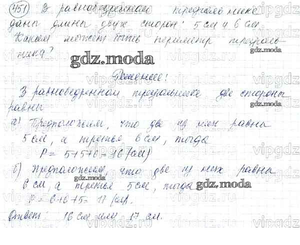 ОТВЕТ на задание № 451 Учебник по Математике 5 класс Никольский МГУ - школе