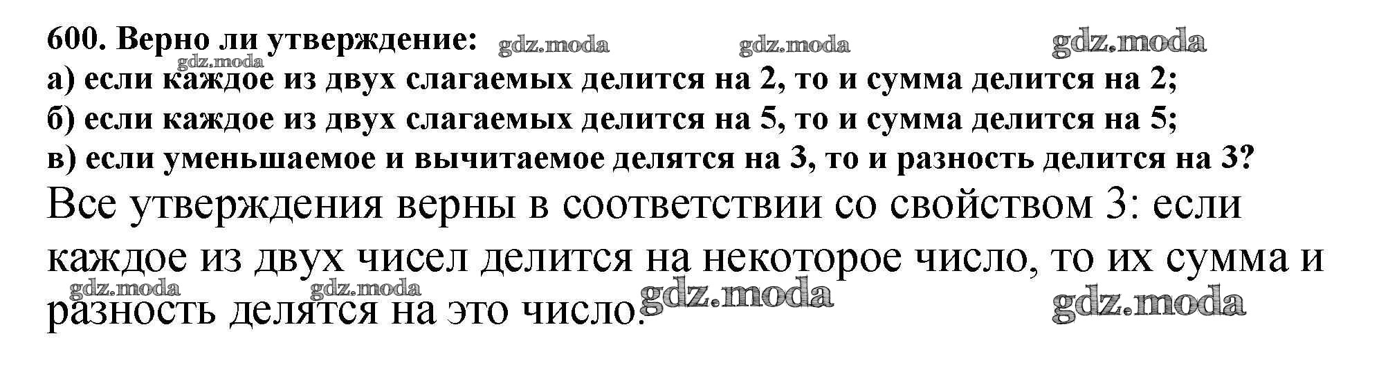 ОТВЕТ на задание № 600 Учебник по Математике 5 класс Никольский МГУ - школе