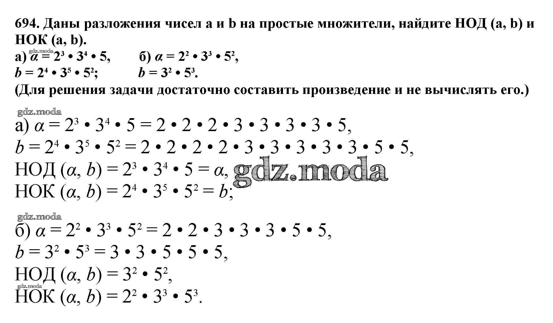 ОТВЕТ на задание № 694 Учебник по Математике 5 класс Никольский МГУ - школе