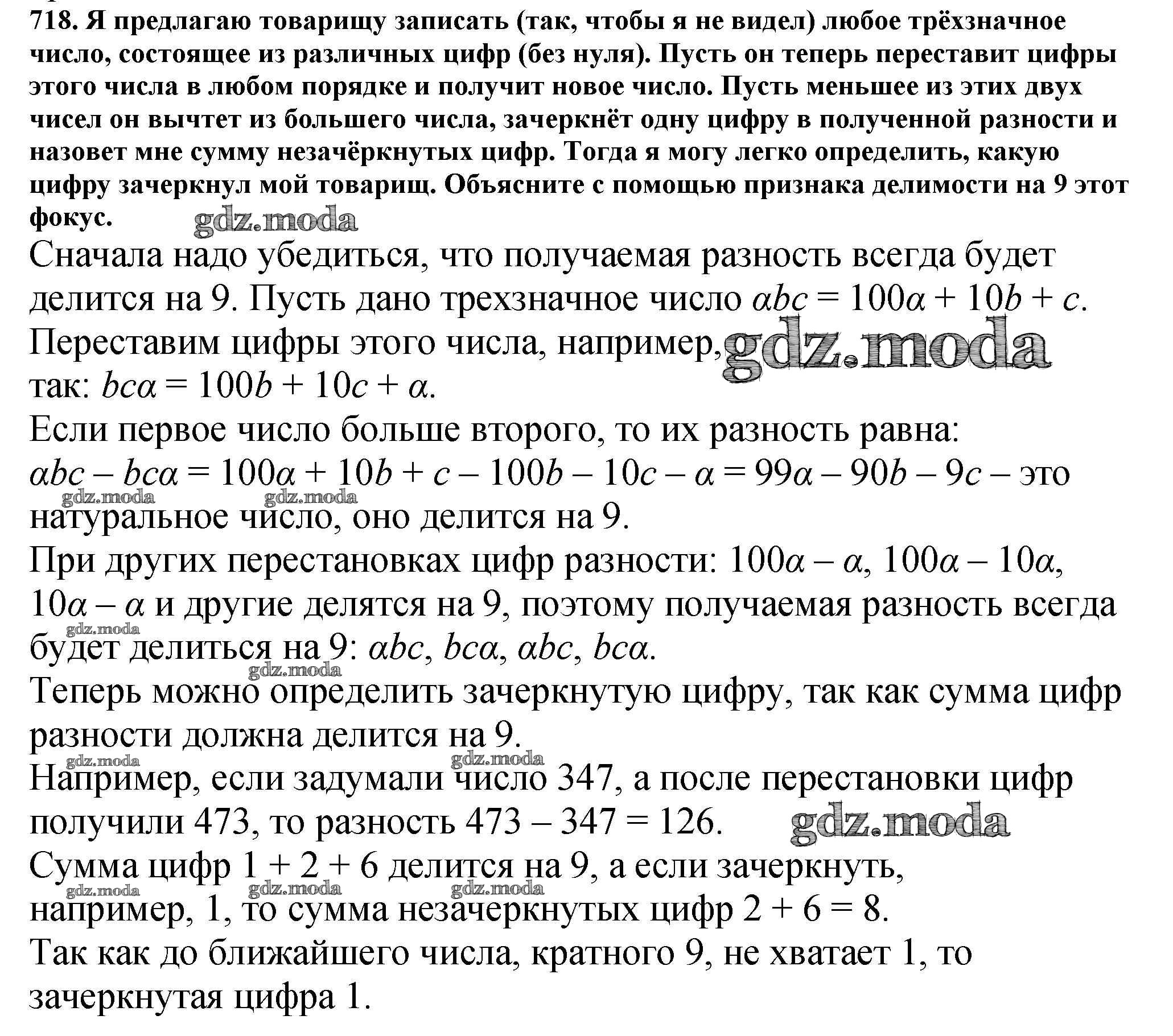ОТВЕТ на задание № 718 Учебник по Математике 5 класс Никольский МГУ - школе