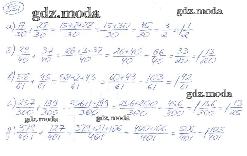 ОТВЕТ на задание № 851 Учебник по Математике 5 класс Никольский МГУ - школе