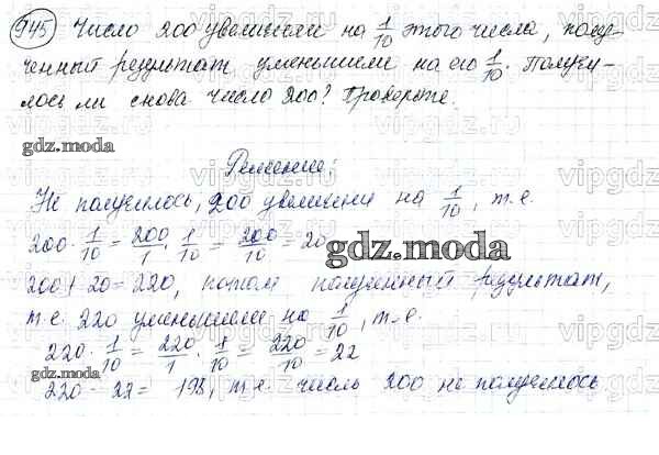 ОТВЕТ на задание № 945 Учебник по Математике 5 класс Никольский МГУ - школе