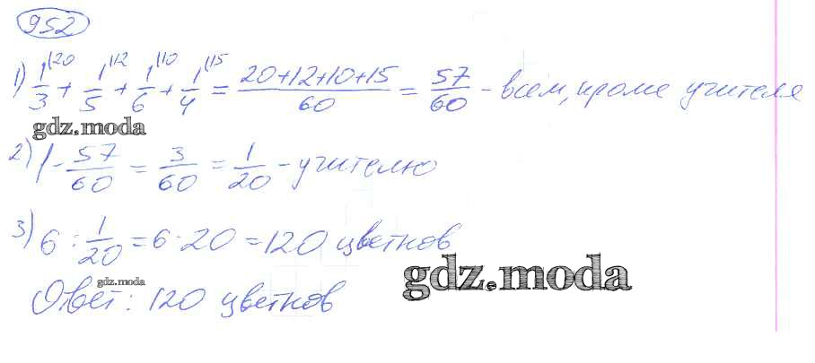 ОТВЕТ на задание № 952 Учебник по Математике 5 класс Никольский МГУ - школе