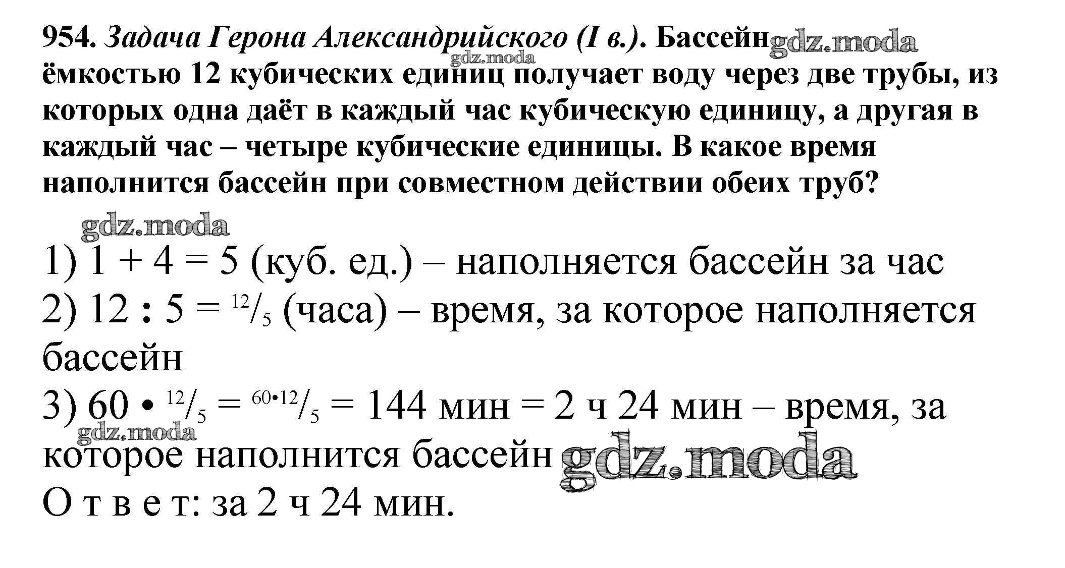 ОТВЕТ на задание № 954 Учебник по Математике 5 класс Никольский МГУ - школе