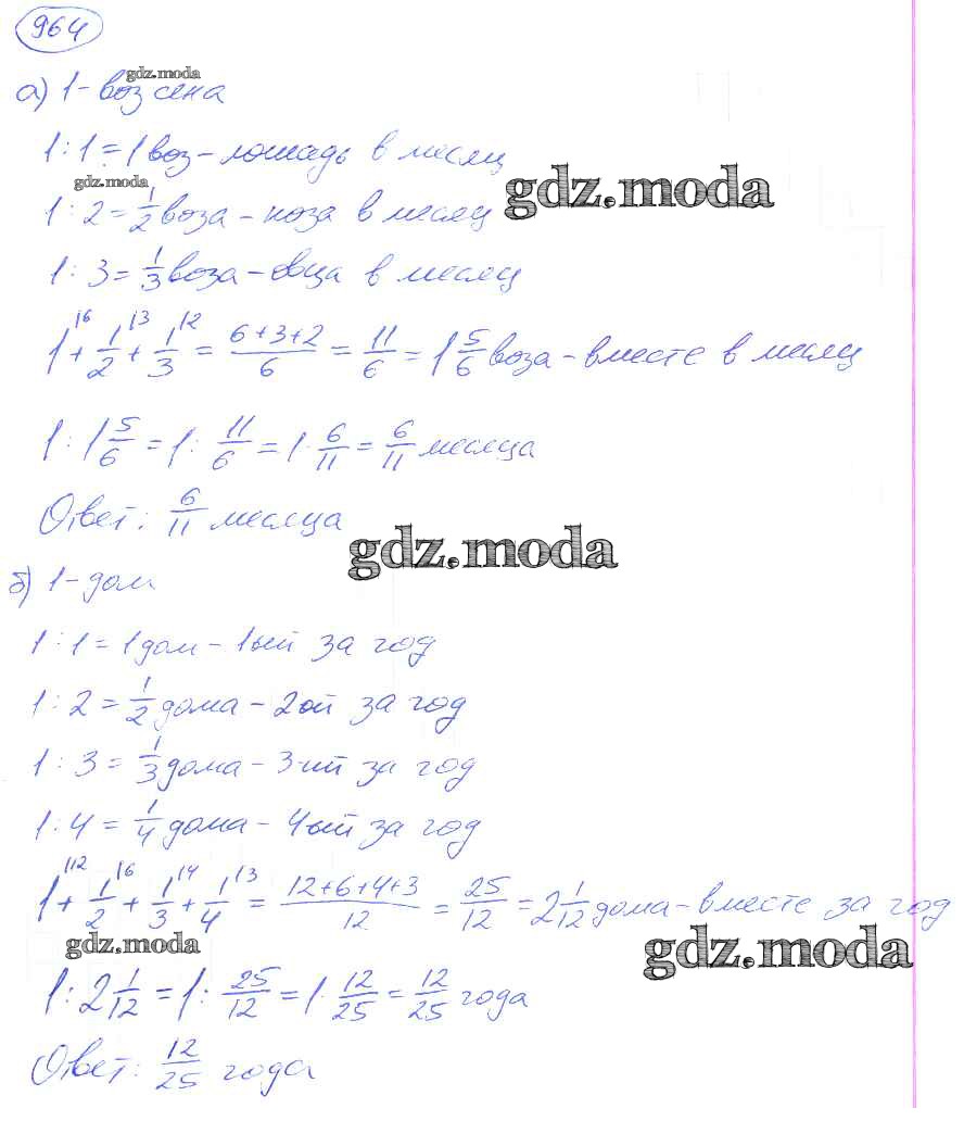 ОТВЕТ на задание № 964 Учебник по Математике 5 класс Никольский МГУ - школе