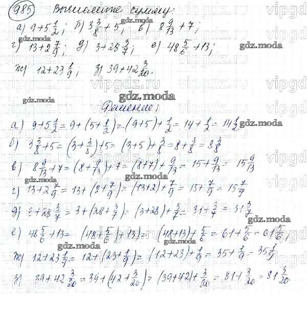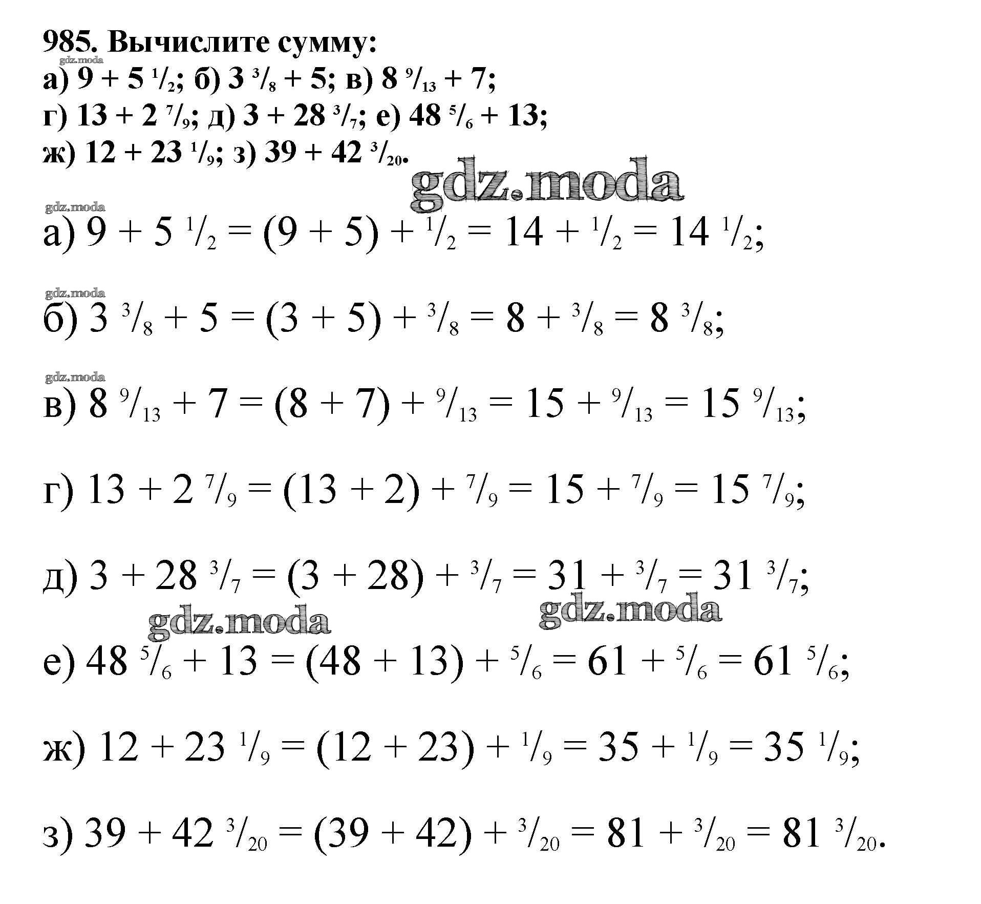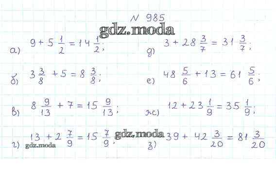 ОТВЕТ на задание № 985 Учебник по Математике 5 класс Никольский МГУ - школе