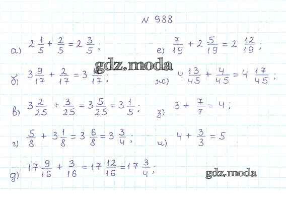 ОТВЕТ на задание № 988 Учебник по Математике 5 класс Никольский МГУ - школе