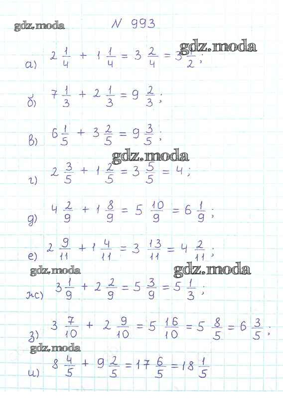 ОТВЕТ на задание № 993 Учебник по Математике 5 класс Никольский МГУ - школе